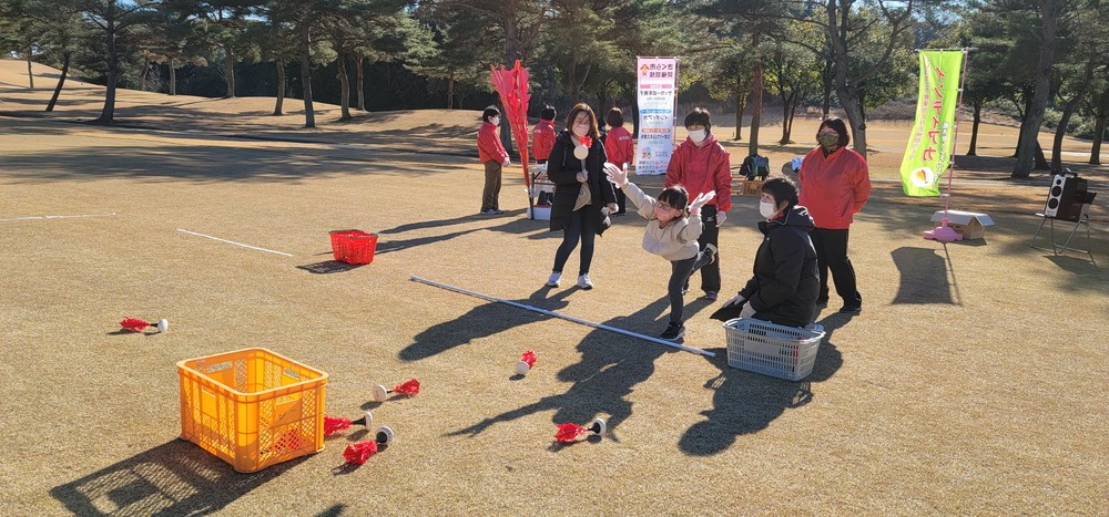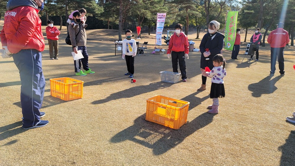 令和3(2021)年12月19日(日)に、さくら市の『セブンハンドレッドクラブ』にて開催された『ゴルフでもゴルフじゃなくてもちょうどいい!! セブンの森~冬のスポーツ祭典~』にて、来場者の方々にインディアカを体験していただきました。 体験していただいた様子の写真は以下の通りです。 ◄ 1 ... 3 4